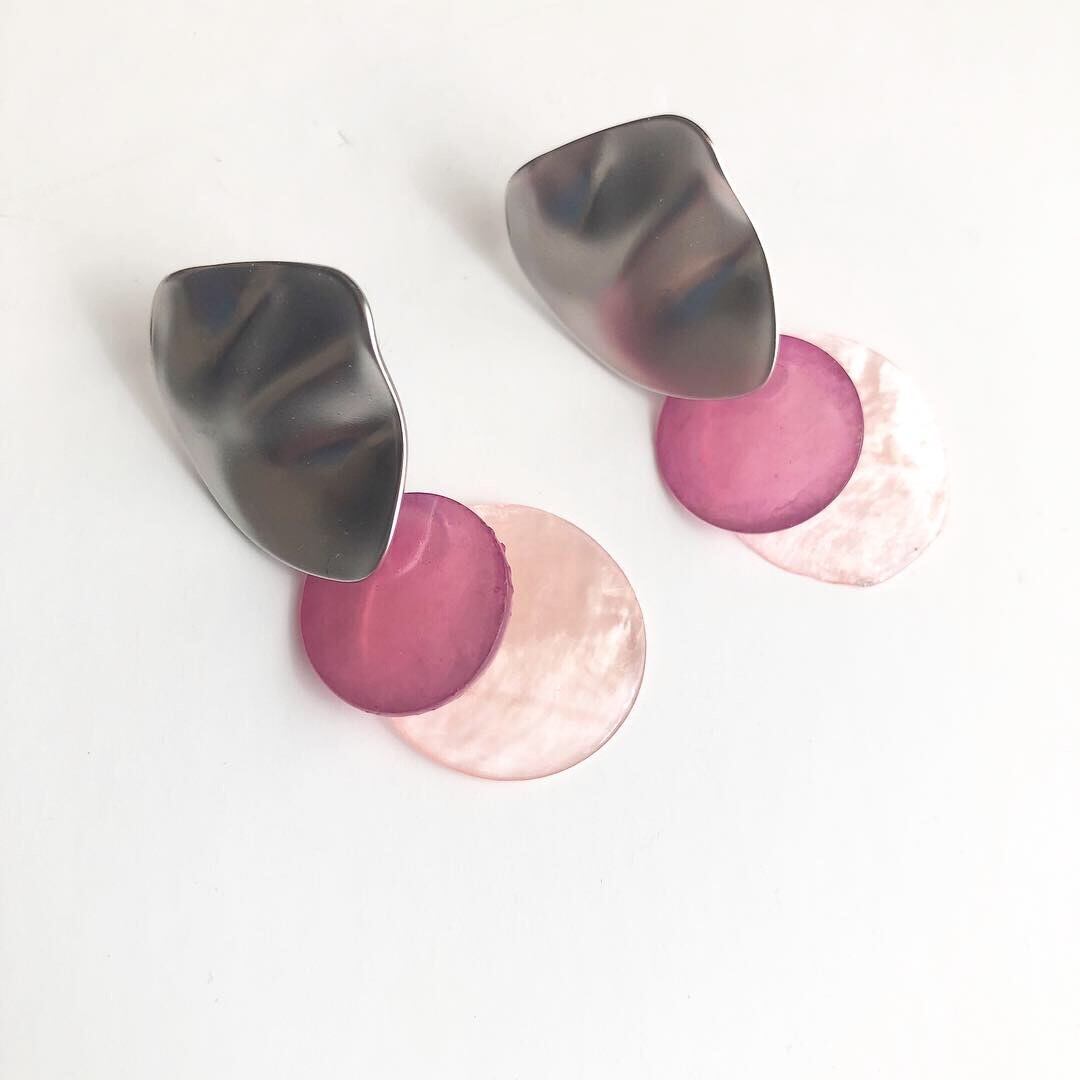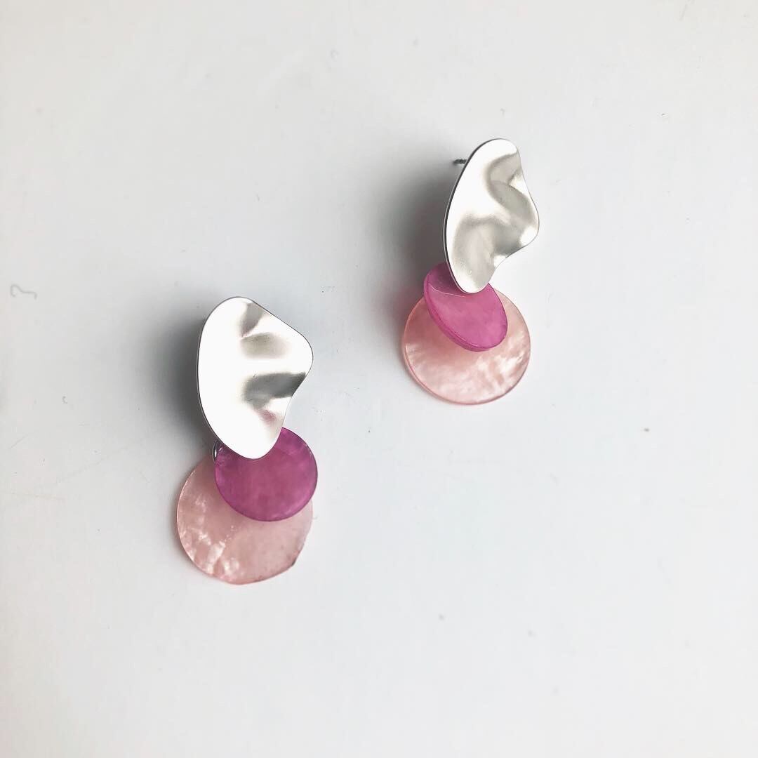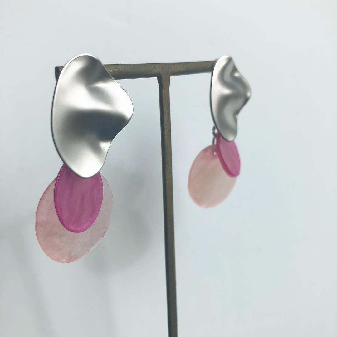 鮮やかなピンク+ピンクのピアスは耳元でゆらゆらと揺れて、気分を明るくさせてくれます。