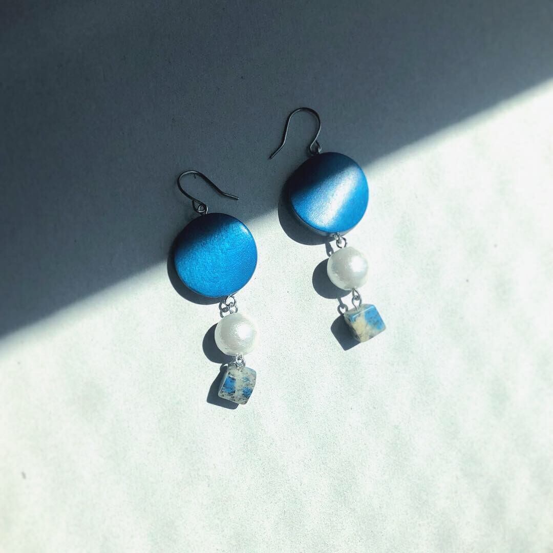 エベレストに次ぐ世界に2番目の高い標高8611mの山。その麓で採れる希少な石を使った青のピアス。