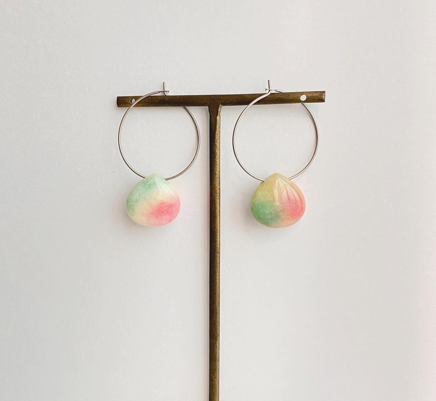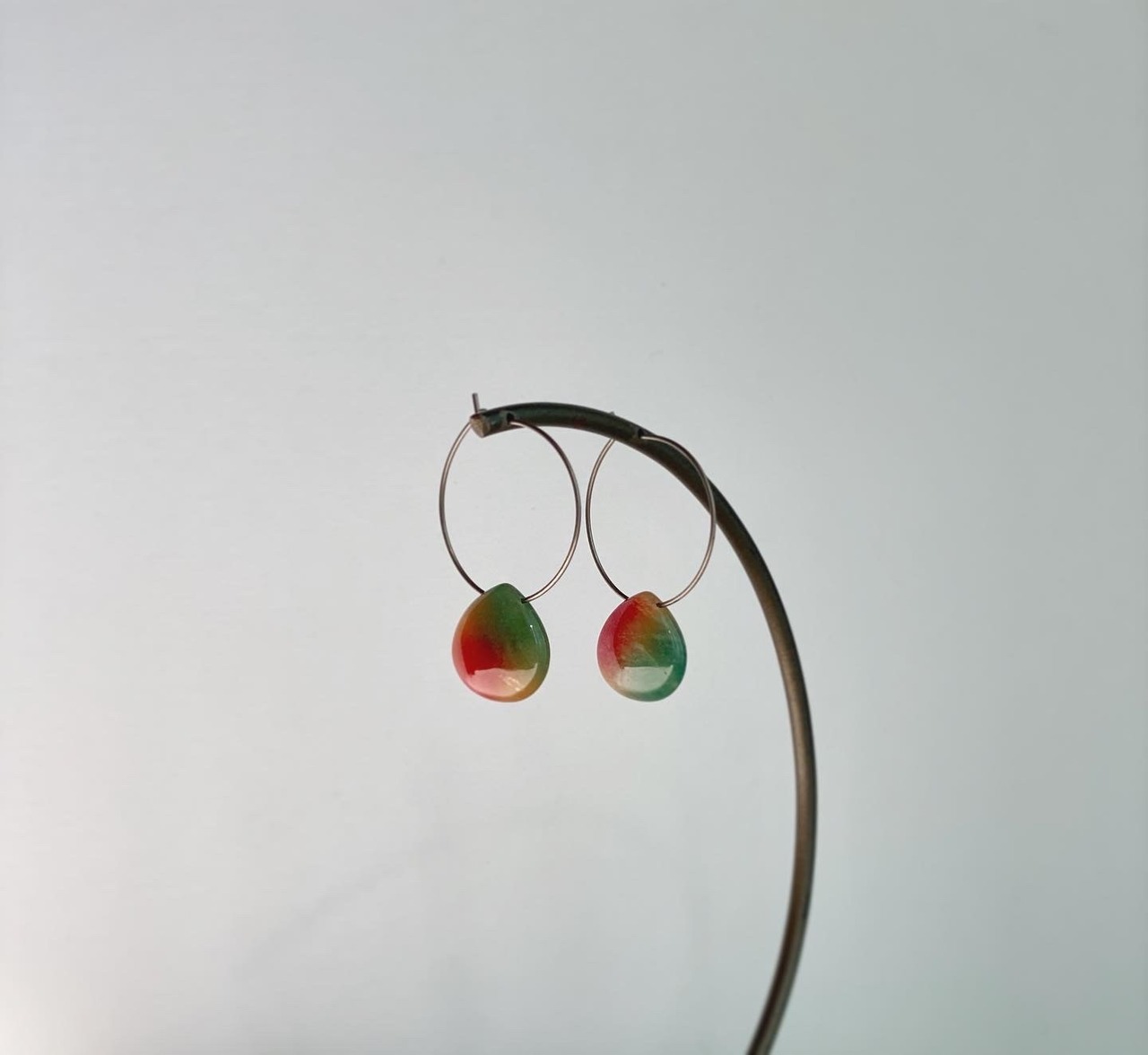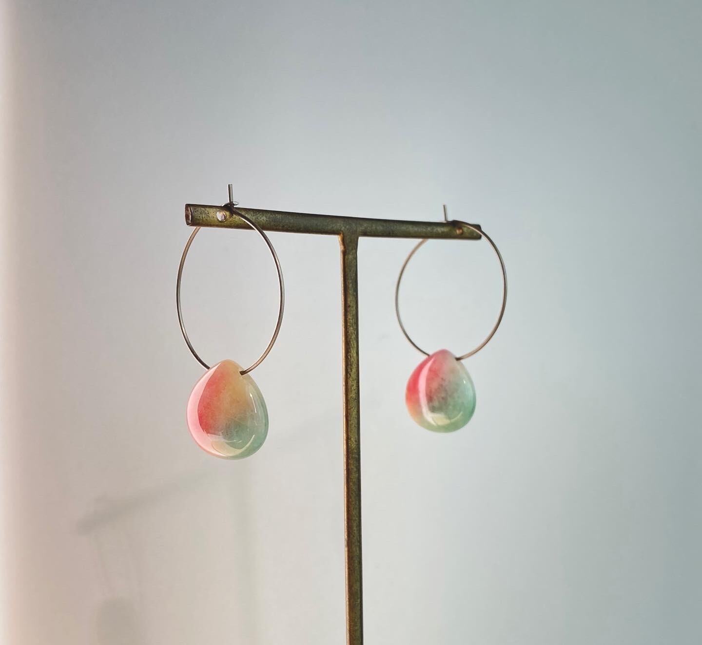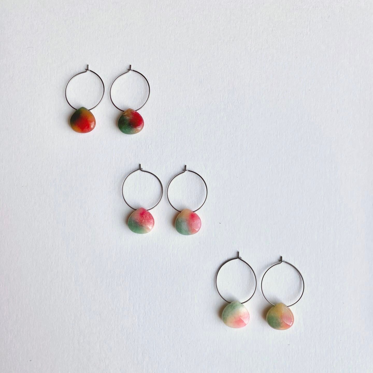 グリーン&レッドカラーに染められたジェード(天然クォーツァイト)のピアスです。