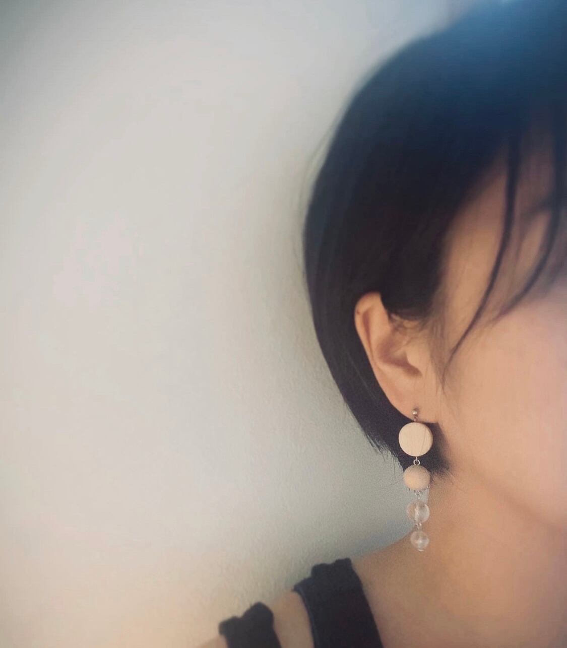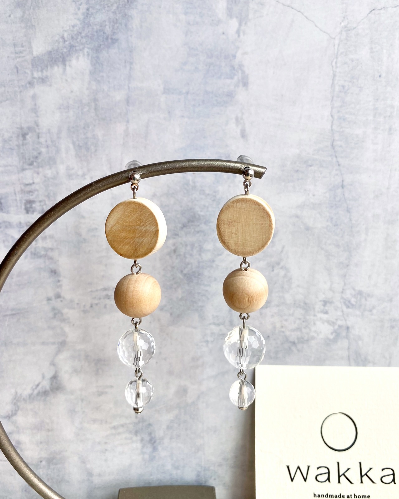 素朴で温かな雰囲気を持つウッドと、美しい透明感を放つクリスタルのロングチタンピアスです。