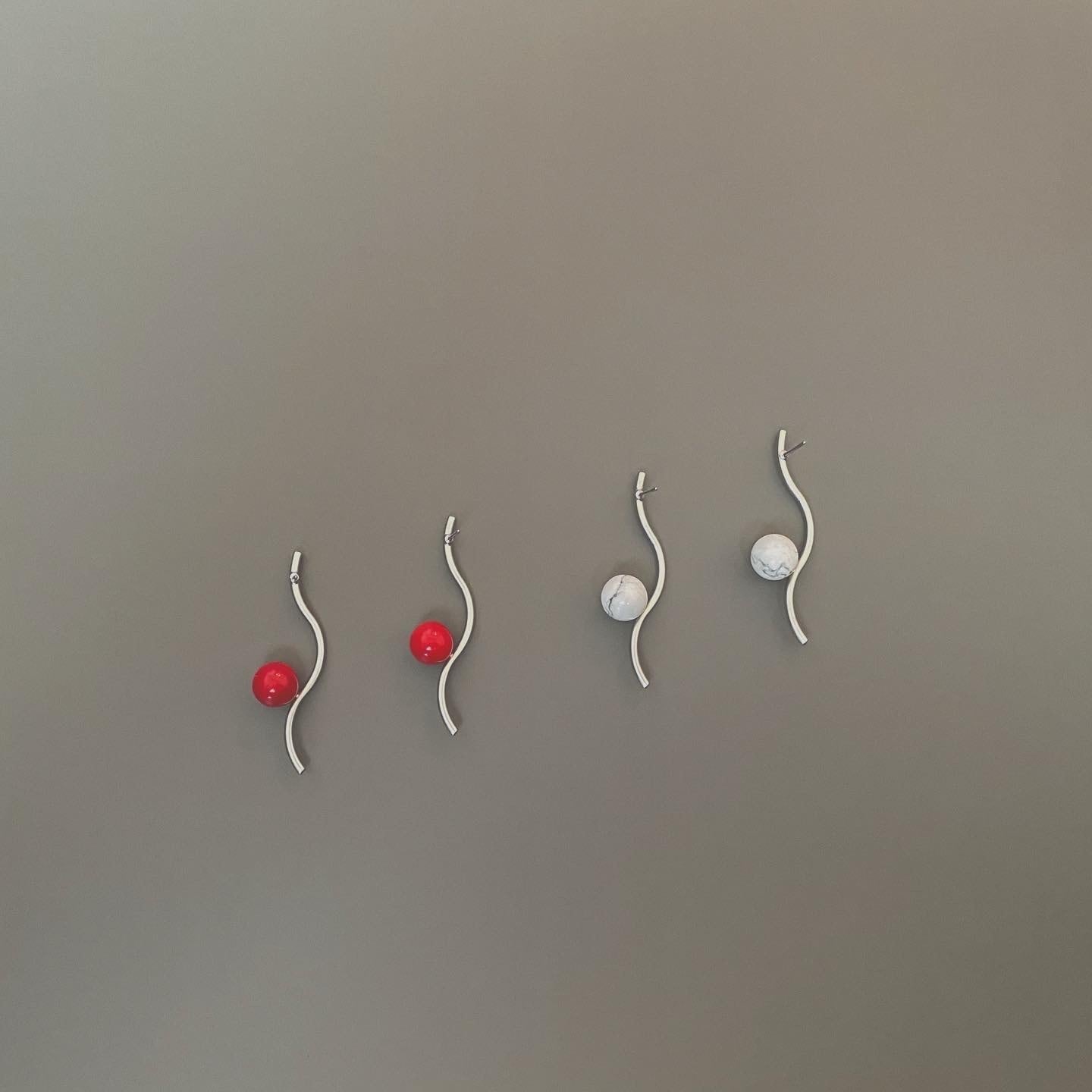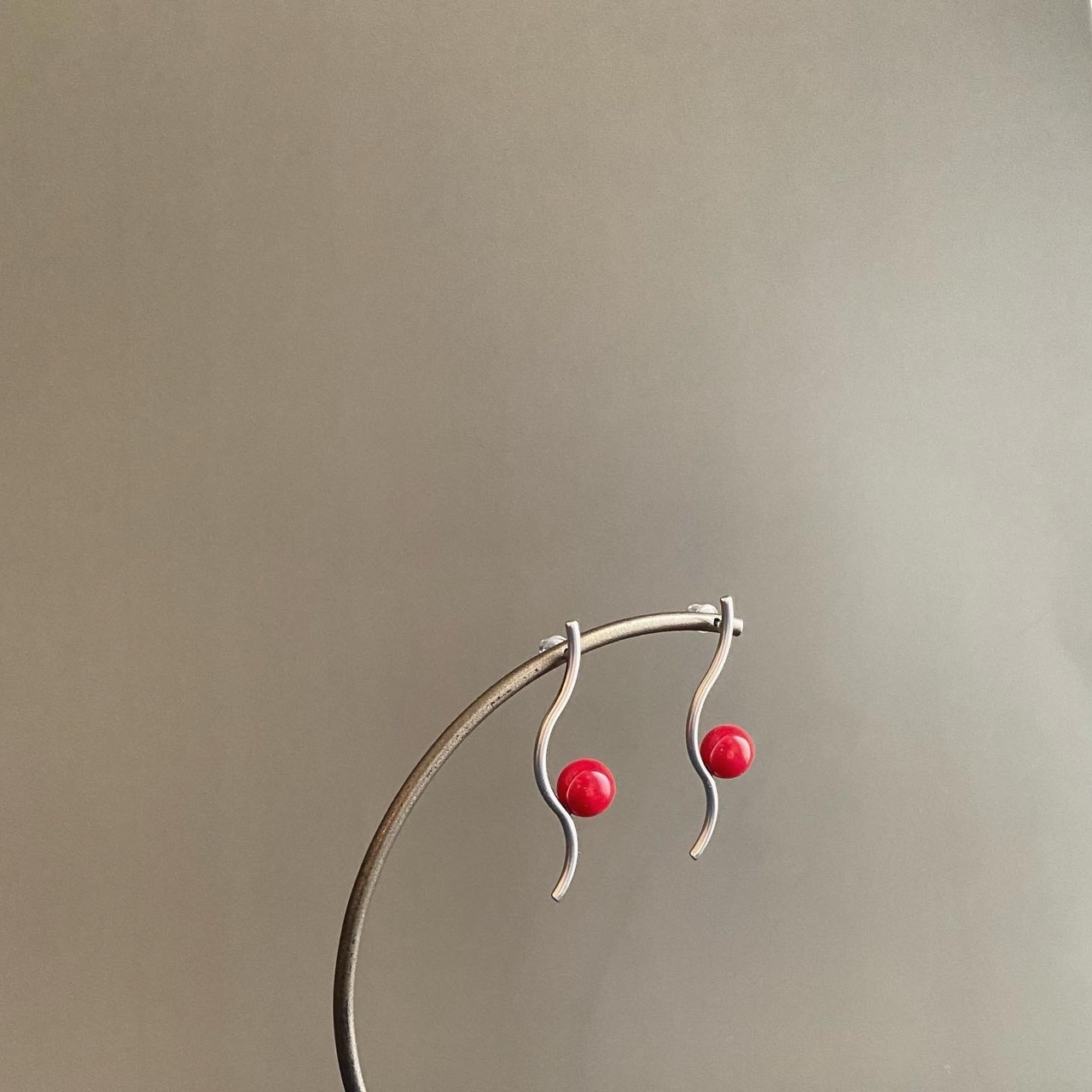 マットなシルバーのくねくねとした枝にぶら下がる赤い実は、レッドコーラル。