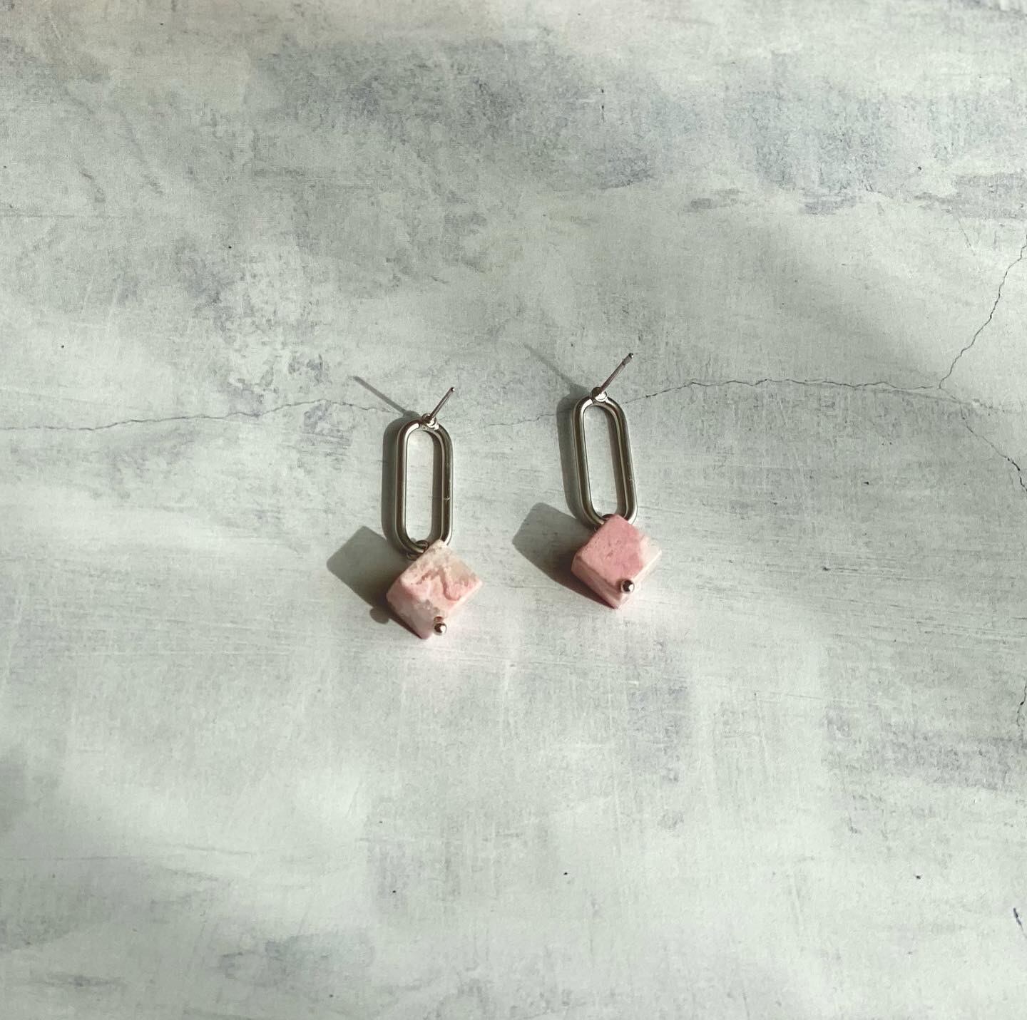 楕円のマットシルバーと淡いピンクの組み合わせ。