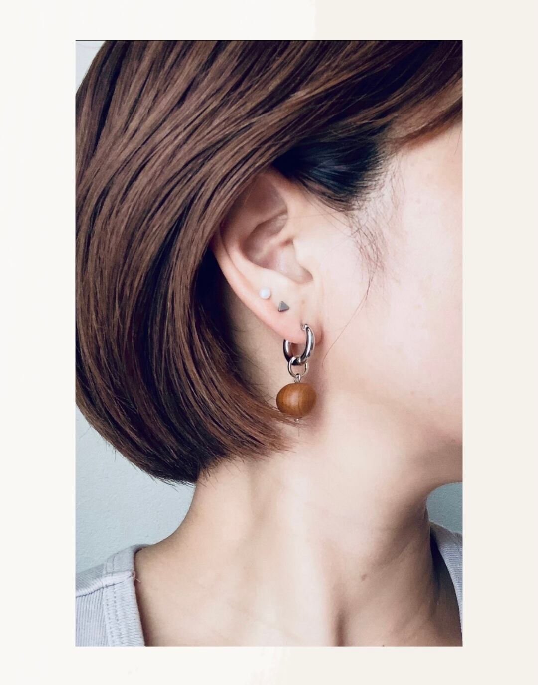 こちらはフープタイプなので、屋久杉の部分を外して、フープのみ単品でも着用できる2wayになります。