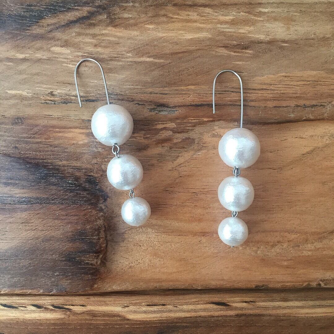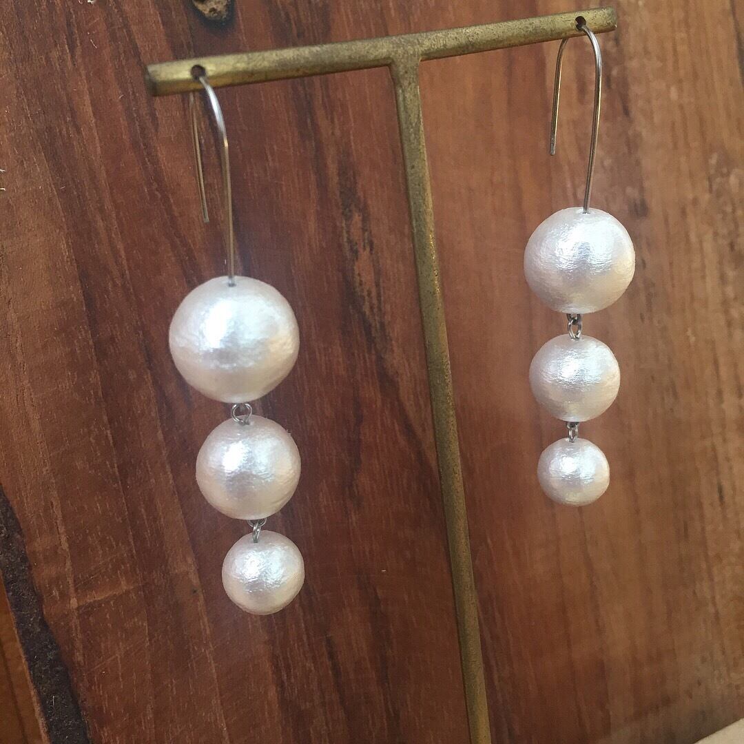 大粒コットンパールのゆれるピアス
